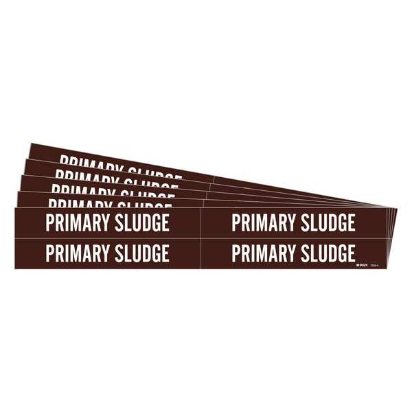 Pipe Marker, Pipe Marker Mounting Style Adhesive Pipe Marker, Pipe Marker Legend Primary Sludge, Legend Text Color White, IIAR System Abbreviation Not Applicable, IIAR Phase Not Applicable, IIAR Pressure Level Not Applicable, Character Height 3/4 in, Background Color Brown, With or Without Arrows Without, Package Quantity 5