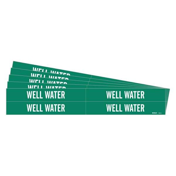 Pipe Marker, Pipe Marker Mounting Style Adhesive Pipe Marker, Pipe Marker Legend Well Water, Legend Text Color White, Character Height 3/4 in, Background Color Green, With or Without Arrows Without, Package Quantity 5
