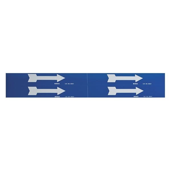 Pipe Marker, Pipe Marker Legend (Arrow), Legend Text Color White, Background Color Blue, Pipe Marker Mounting Style Adhesive Pipe Marker, Self-Adhesive Pipe Marker Format Die-Cut on Cards, Length 1 1/8 in, Width 7 in, Thickness 0.004 in, Roll Length Not Applicable