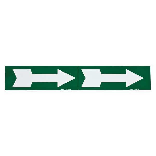 Pipe Marker, Pipe Marker Legend (Arrow), Legend Text Color White, Background Color Green, Pipe Marker Mounting Style Adhesive Pipe Marker, Self-Adhesive Pipe Marker Format Die-Cut on Cards, Length 4 in, Width 12 in, Thickness 0.004 in, Roll Length Not Applicable