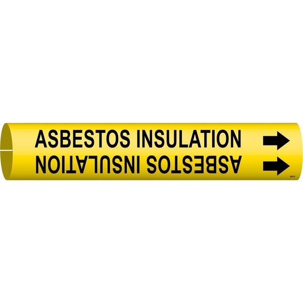 Pipe Marker, Pipe Marker Mounting Style Snap-On Pipe Marker, Pipe Marker Legend Asbestos Insulation, Legend Text Color Black, Character Height 1 1/4 in, Background Color Yellow, With or Without Arrows With