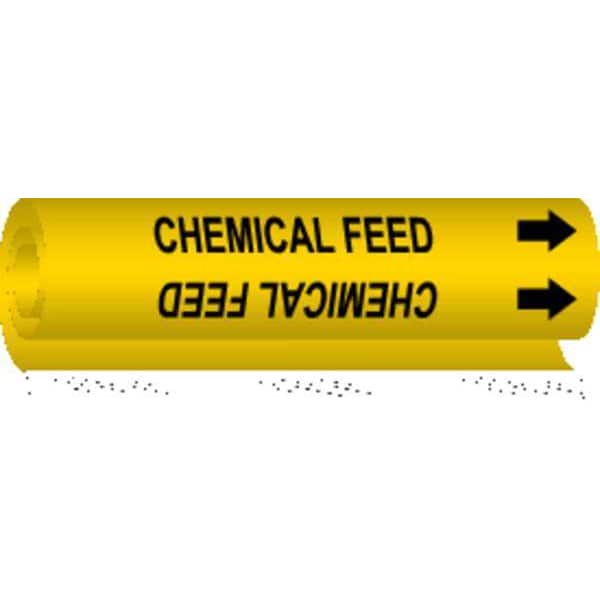 Pipe Marker, Pipe Marker Mounting Style Wrap-Around Pipe Marker, Pipe Marker Legend Chemical Feed, Legend Text Color Black, Character Height 1/2 in, Background Color Yellow, With or Without Arrows With