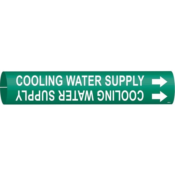 Pipe Marker, Pipe Marker Mounting Style Snap-On Pipe Marker, Pipe Marker Legend Cooling Water Supply, Legend Text Color White, Character Height 1 1/4 in, Background Color Green, With or Without Arrows With