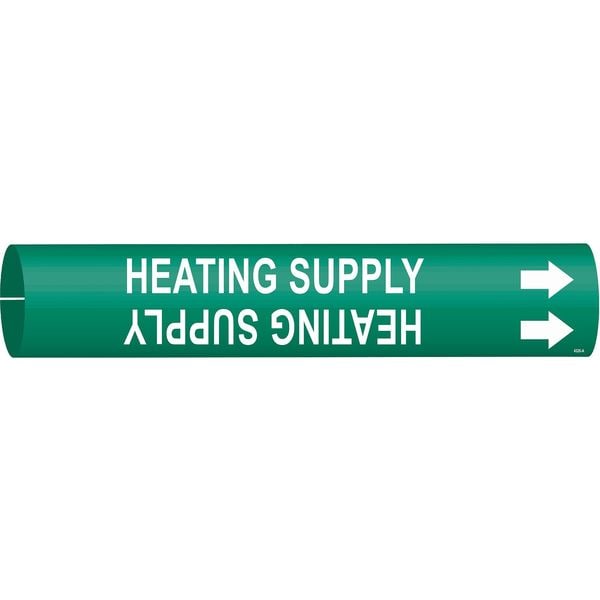 Pipe Marker, Pipe Marker Mounting Style Snap-On Pipe Marker, Pipe Marker Legend Heating Supply, Legend Text Color White, Character Height 1/2 in, Background Color Green, With or Without Arrows With