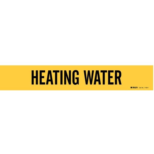 Pipe Marker, Pipe Marker Mounting Style Adhesive Pipe Marker, Pipe Marker Legend Heating Water, Legend Text Color Black, Character Height 2 in, Background Color Yellow, With or Without Arrows Without
