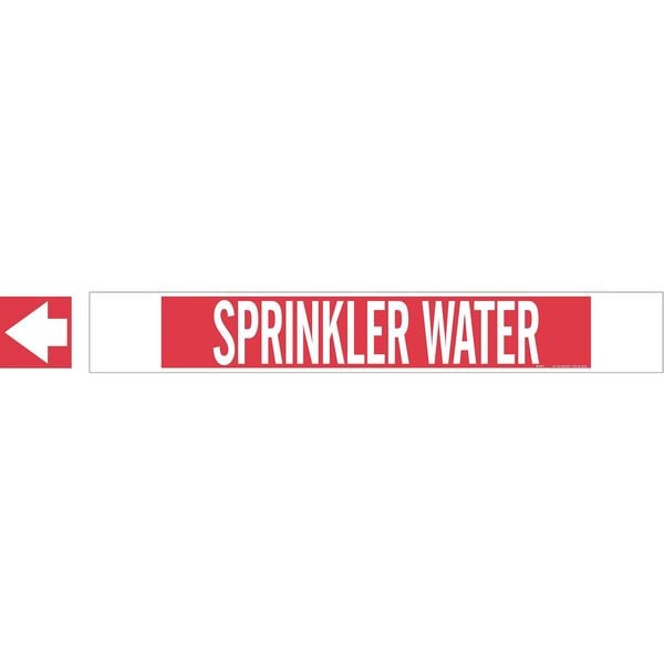 Pipe Marker, Pipe Marker Mounting Style Fiberglass Carrier with Strapping and Mounting Clip Pipe Markers, Pipe Marker Legend Sprinkler Water, Legend Text Color White, Character Height 3 1/2 in, Background Color Red, With or Without Arrows With