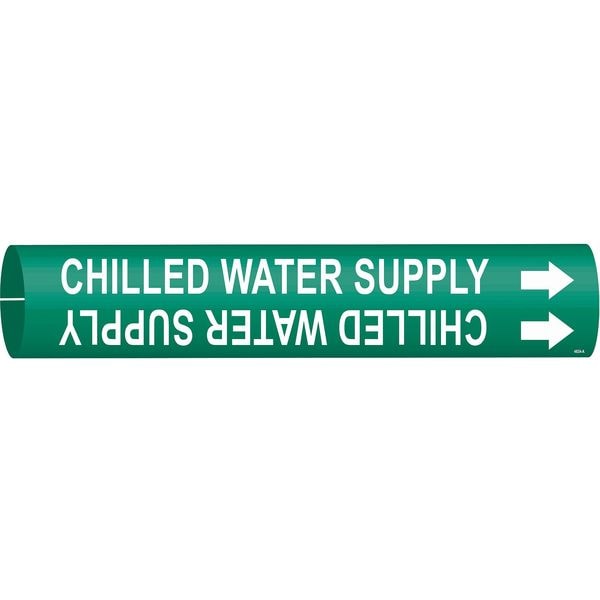 Pipe Marker, Pipe Marker Mounting Style Snap-On Pipe Marker, Pipe Marker Legend Chilled Water Supply, Legend Text Color White, Character Height 1/2 in, Background Color Green, With or Without Arrows With