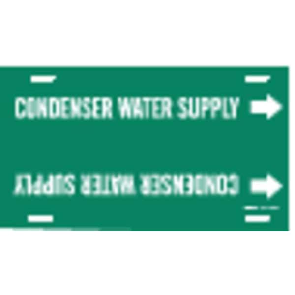 Pipe Marker, Pipe Marker Mounting Style Strap-On Pipe Marker, Pipe Marker Legend Condenser Water Supply, Legend Text Color White, Character Height 1 1/4 in, Background Color Green, With or Without Arrows With