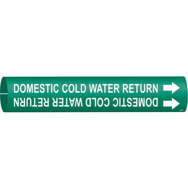 Pipe Marker, Pipe Marker Mounting Style Snap-On Pipe Marker, Pipe Marker Legend Domestic Cold Water Return, Legend Text Color White, Character Height 1 1/4 in, Background Color Green, With or Without Arrows With
