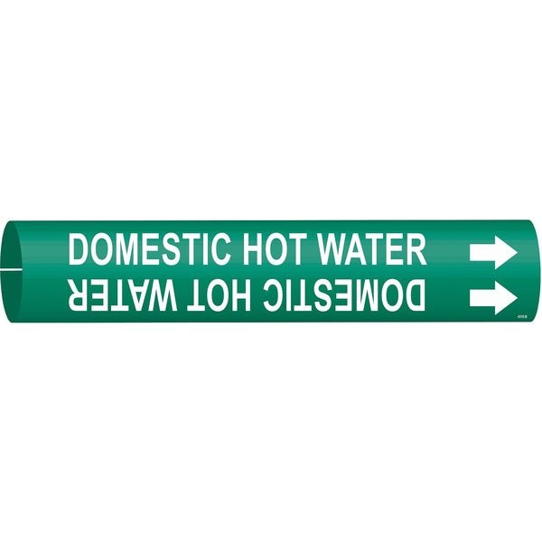 Pipe Marker, Pipe Marker Mounting Style Snap-On Pipe Marker, Pipe Marker Legend Domestic Hot Water, Legend Text Color White, Character Height 3/4 in, Background Color Green, With or Without Arrows With
