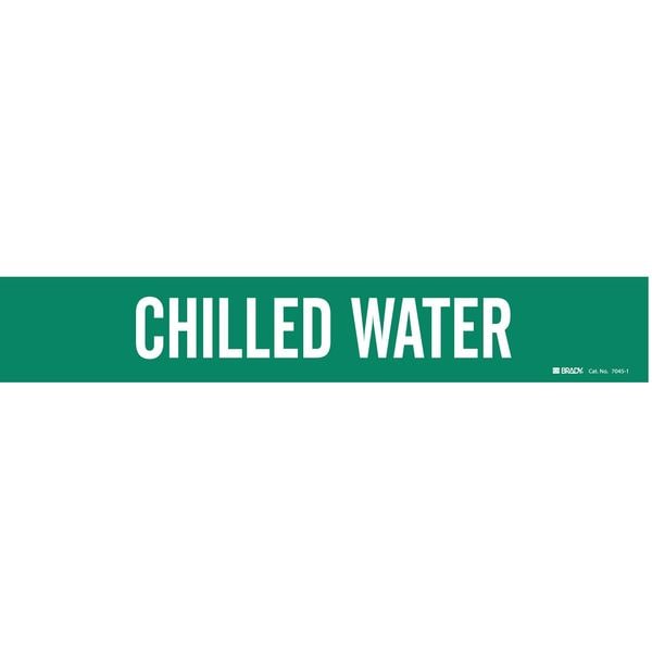 Pipe Marker, Pipe Marker Mounting Style Adhesive Pipe Marker, Pipe Marker Legend Chilled Water, Legend Text Color White, Character Height 2 in, Background Color Green, With or Without Arrows Without