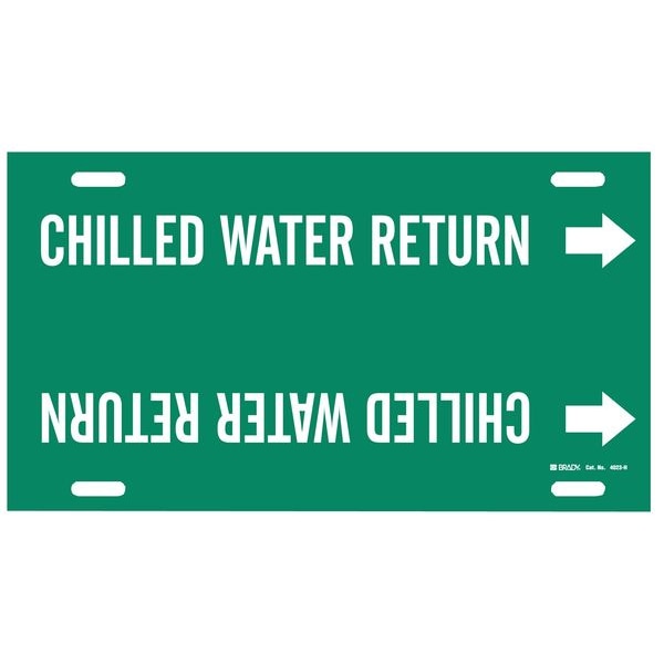 Pipe Marker, Pipe Marker Mounting Style Strap-On Pipe Marker, Pipe Marker Legend Chilled Water Return, Legend Text Color White, Character Height 3 1/2 in, Background Color Green, With or Without Arrows With