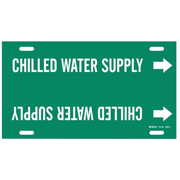 Pipe Marker, Pipe Marker Mounting Style Strap-On Pipe Marker, Pipe Marker Legend Chilled Water Supply, Legend Text Color White, Character Height 3 1/2 in, Background Color Green, With or Without Arrows With
