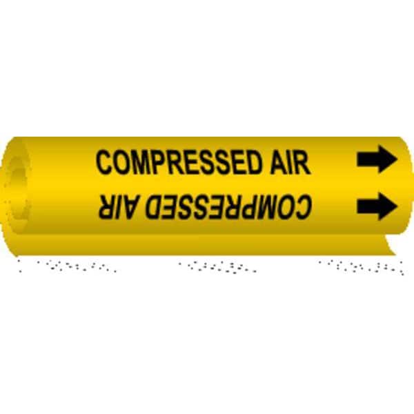 Pipe Marker, Pipe Marker Mounting Style Wrap-Around Pipe Marker, Pipe Marker Legend Compressed Air, Legend Text Color Black, Character Height 3/4 in, Background Color Yellow, With or Without Arrows With