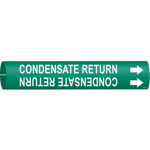 Pipe Marker, Pipe Marker Mounting Style Snap-On Pipe Marker, Pipe Marker Legend Condensate Return, Legend Text Color White, Character Height 1 1/4 in, Background Color Green, With or Without Arrows With