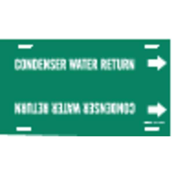 Pipe Marker, Pipe Marker Mounting Style Strap-On Pipe Marker, Pipe Marker Legend Condenser Water Return, Legend Text Color White, Character Height 3 1/2 in, Background Color Green, With or Without Arrows With
