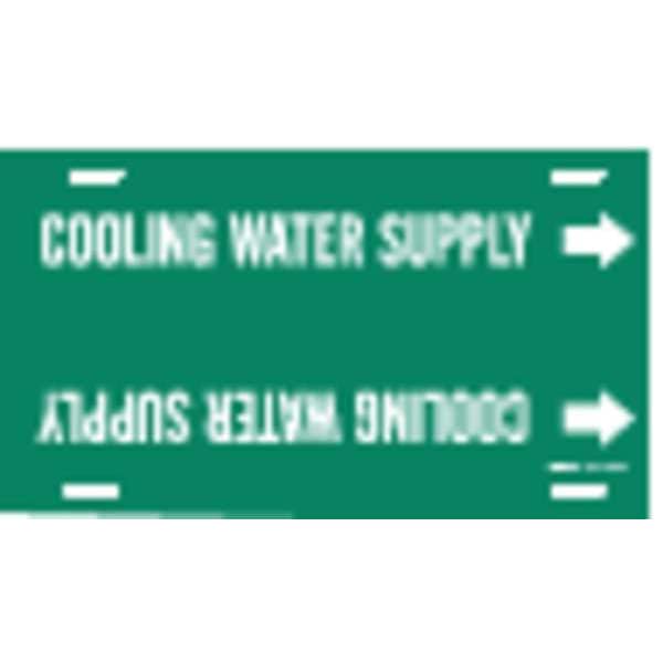 Pipe Marker, Pipe Marker Mounting Style Strap-On Pipe Marker, Pipe Marker Legend Cooling Water Supply, Legend Text Color White, Character Height 3 1/2 in, Background Color Green, With or Without Arrows With