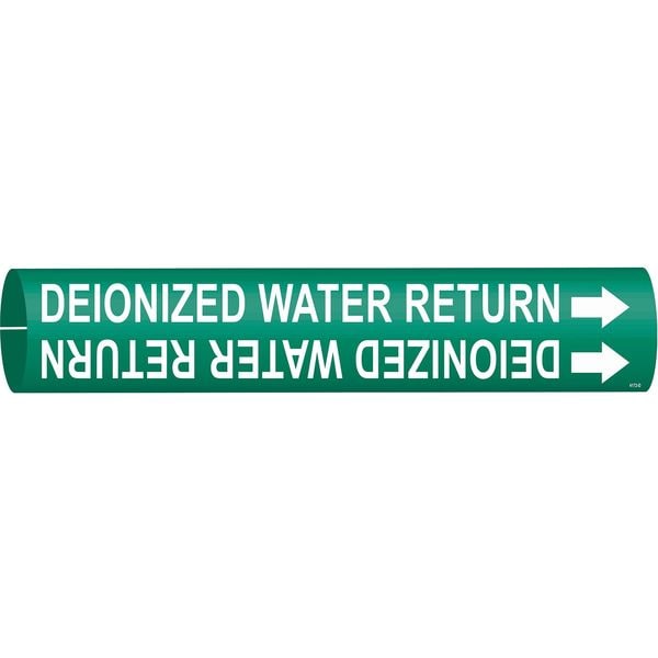 Pipe Marker, Pipe Marker Mounting Style Snap-On Pipe Marker, Pipe Marker Legend Deionized Water Return, Legend Text Color White, Character Height 1 1/4 in, Background Color Green, With or Without Arrows With