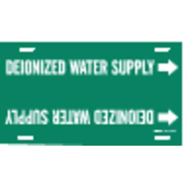 Pipe Marker, Pipe Marker Mounting Style Strap-On Pipe Marker, Pipe Marker Legend Deionized Water Supply, Legend Text Color White, Character Height 3 1/2 in, Background Color Green, With or Without Arrows With