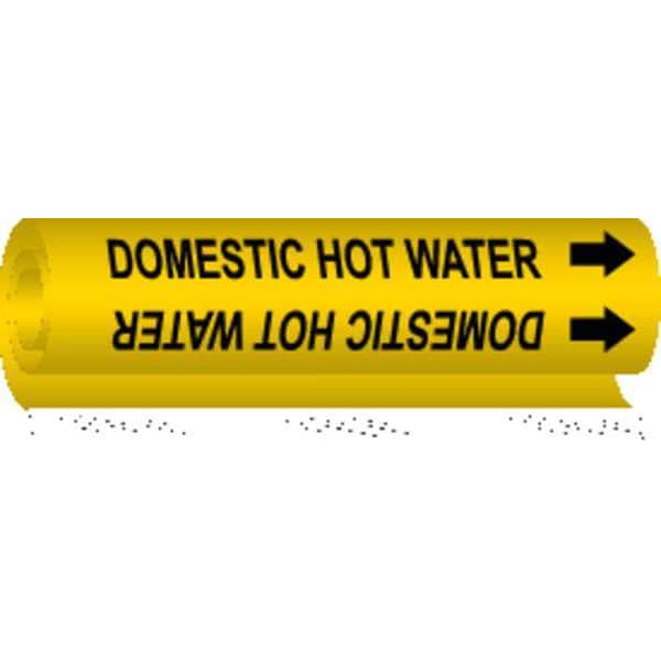 Pipe Marker, Pipe Marker Mounting Style Wrap-Around Pipe Marker, Pipe Marker Legend Domestic Hot Water, Legend Text Color Black, Character Height 1/2 in, Background Color Yellow, With or Without Arrows With