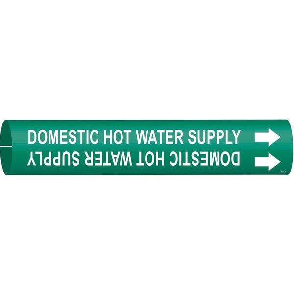 Pipe Marker, Pipe Marker Mounting Style Snap-On Pipe Marker, Pipe Marker Legend Domestic Hot Water Supply, Legend Text Color White, Character Height 1 1/4 in, Background Color Green, With or Without Arrows With