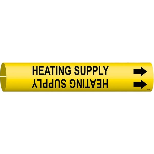 Pipe Marker, Pipe Marker Mounting Style Snap-On Pipe Marker, Pipe Marker Legend Heating Supply, Legend Text Color Black, Character Height 3/4 in, Background Color Yellow, With or Without Arrows With