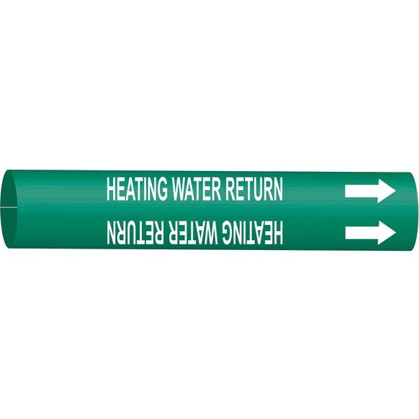 Pipe Marker, Pipe Marker Mounting Style Snap-On Pipe Marker, Pipe Marker Legend Heating Water Return, Legend Text Color White, Character Height 1 1/4 in, Background Color Green, With or Without Arrows With