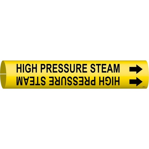 Pipe Marker, Pipe Marker Mounting Style Snap-On Pipe Marker, Pipe Marker Legend High Pressure Steam, Legend Text Color Black, Character Height 1/2 in, Background Color Yellow, With or Without Arrows With