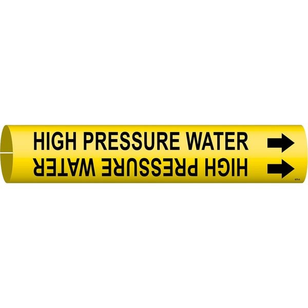 Pipe Marker, Pipe Marker Mounting Style Snap-On Pipe Marker, Pipe Marker Legend High Pressure Water, Legend Text Color Black, Character Height 1/2 in, Background Color Yellow, With or Without Arrows With