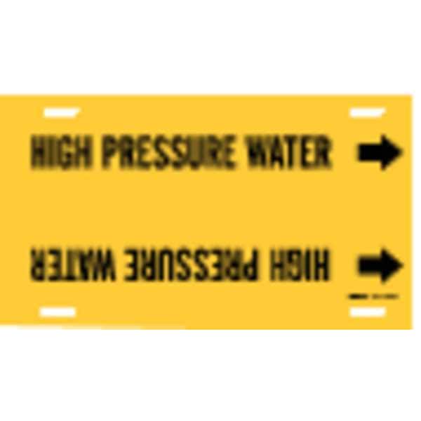 Pipe Marker, Pipe Marker Mounting Style Strap-On Pipe Marker, Pipe Marker Legend High Pressure Water, Legend Text Color Black, Character Height 1 1/4 in, Background Color Yellow, With or Without Arrows With