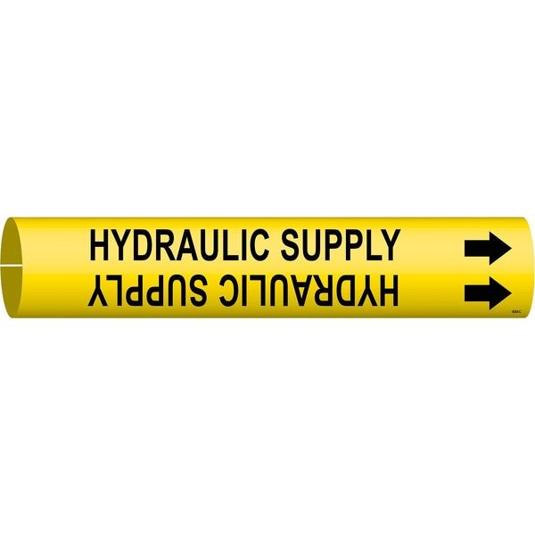 Pipe Marker, Pipe Marker Mounting Style Snap-On Pipe Marker, Pipe Marker Legend Hydraulic Supply, Legend Text Color Black, Character Height 1 1/4 in, Background Color Yellow, With or Without Arrows With