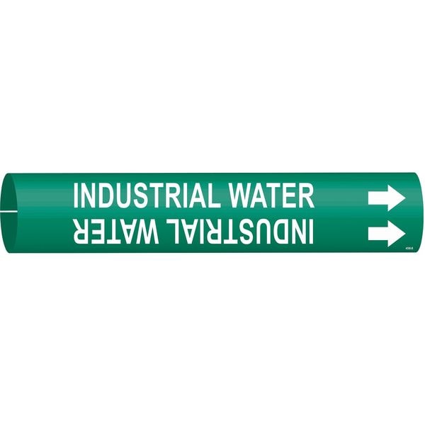 Pipe Marker, Pipe Marker Mounting Style Snap-On Pipe Marker, Pipe Marker Legend Industrial Water, Legend Text Color White, Character Height 3/4 in, Background Color Green, With or Without Arrows With