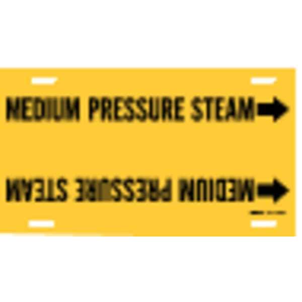 Pipe Marker, Pipe Marker Mounting Style Strap-On Pipe Marker, Pipe Marker Legend Medium Pressure Steam, Legend Text Color Black, Character Height 3 1/2 in, Background Color Yellow, With or Without Arrows With