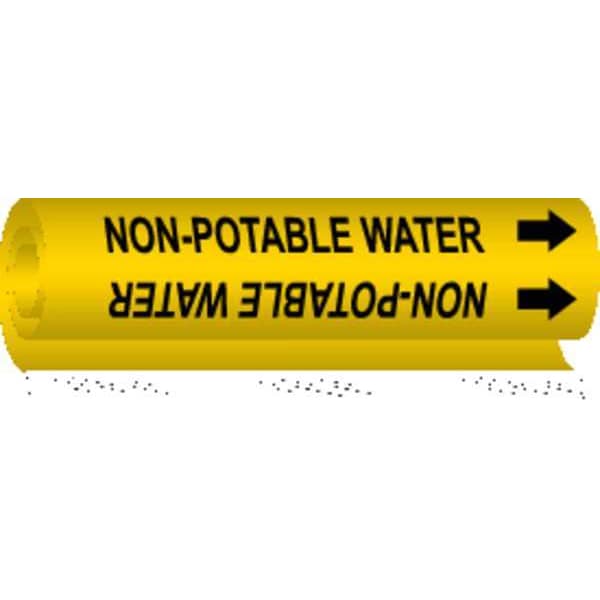 Pipe Marker, Pipe Marker Mounting Style Wrap-Around Pipe Marker, Pipe Marker Legend Non-Potable Water, Legend Text Color Black, Character Height 3/4 in, Background Color Yellow, With or Without Arrows With