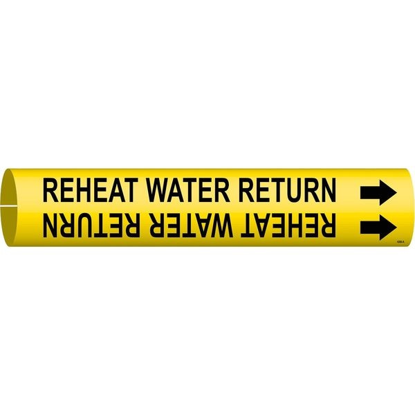 Pipe Marker, Pipe Marker Mounting Style Snap-On Pipe Marker, Pipe Marker Legend Reheat Water Return, Legend Text Color Black, Character Height 1/2 in, Background Color Yellow, With or Without Arrows With