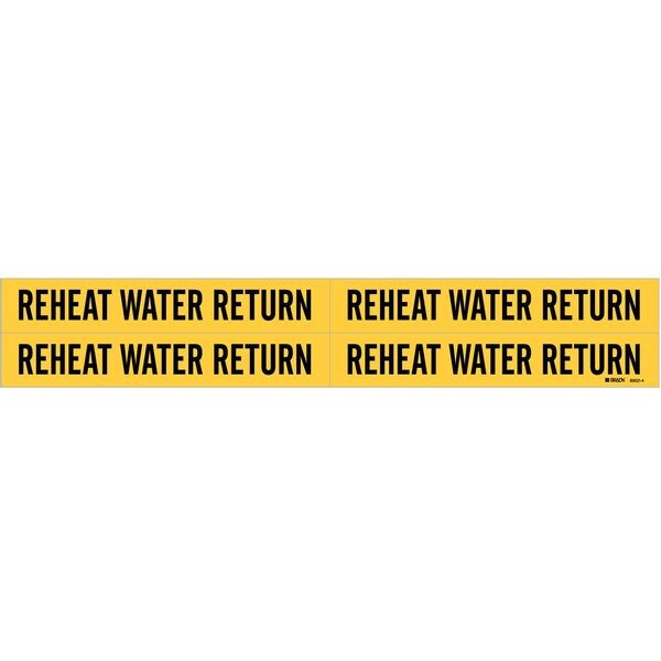 Pipe Marker, Pipe Marker Mounting Style Adhesive Pipe Marker, Pipe Marker Legend Reheat Water Return, Legend Text Color Black, Character Height 3/4 in, Background Color Yellow, With or Without Arrows Without