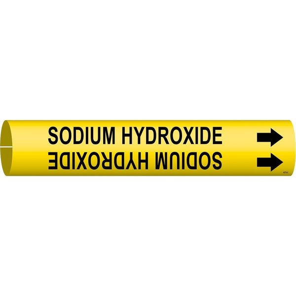 Pipe Marker, Pipe Marker Mounting Style Snap-On Pipe Marker, Pipe Marker Legend Sodium Hydroxide, Legend Text Color Black, Character Height 1 1/4 in, Background Color Yellow, With or Without Arrows With