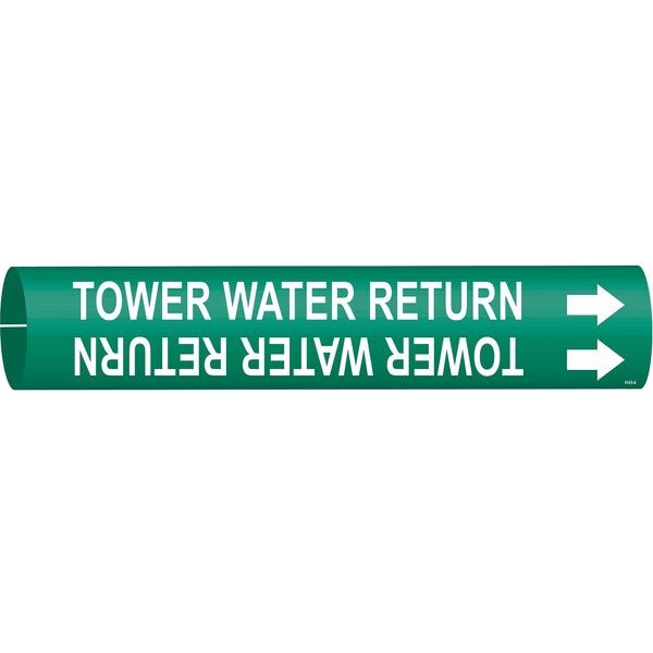 Pipe Marker, Pipe Marker Mounting Style Snap-On Pipe Marker, Pipe Marker Legend Tower Water Return, Legend Text Color White, Character Height 1/2 in, Background Color Green, With or Without Arrows With