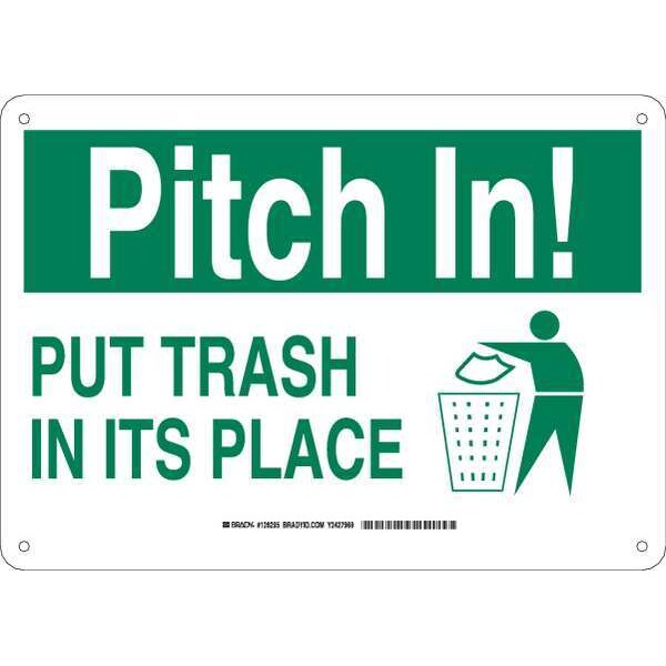 Pitch In, Put Trash In Its Place, 14" W x 10" H, Rectangle, Aluminum, 128295