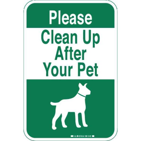 Pet Sign, Sign Subject Matter Pets, Height 18 In., Width 12 In., Sign Material Aluminum, Sign Mounting Style With Mounting Holes, Header Please, Legend Clean Up After Your Pet, Printed Language English, Sign Shape Rectangle