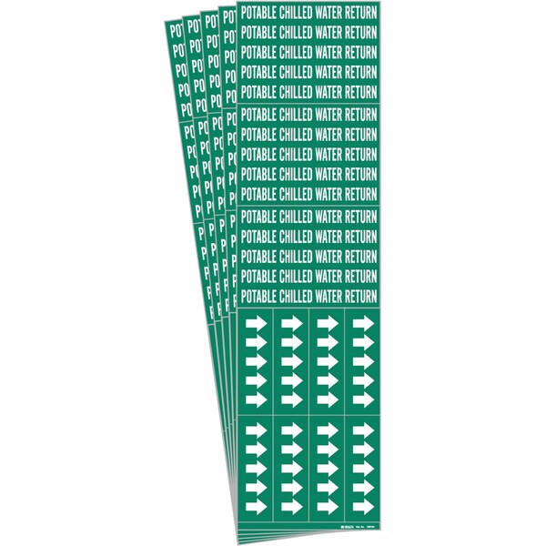 POTABLE Chilled Wtr Ret Pipe Marker Sty 3C Arrows WT on GN 3 per Card, 5 PK