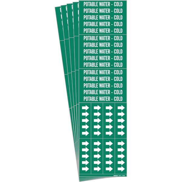 POTABLE WATER - COLD Pipe Marker Style 3C Arrows White on Green 3 per Card, 5 PK