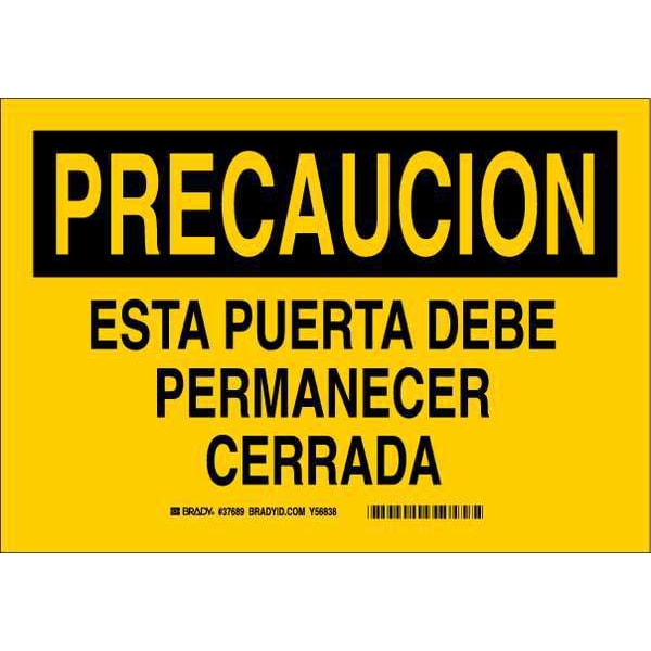 Caution Sign, Sign Subject Matter Door Instruction, Height 7 In., Width 10 In., Sign Material Polyester, Header Precaucion, Legend Esta Puerta Debe Permanecer Cerrada, Printed Language Spanish, Sign Shape Rectangle