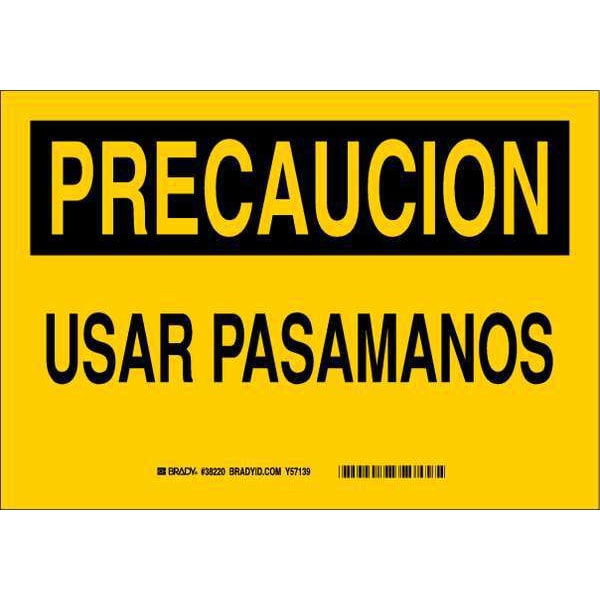 Caution Sign, Sign Subject Matter Accident Prevention, Height 7 In., Width 10 In., Sign Material Plastic, Header Precaucion, Legend Usar Pasamanos, Printed Language Spanish, Sign Shape Rectangle