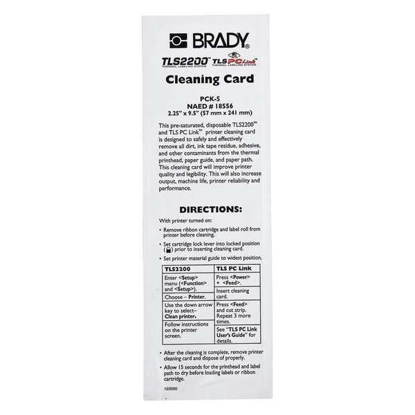 Cleaning Kit, Compatible Grainger Part Number 4VT62, 52HJ91, 5UCU5, Compatible Mfr Part Number BMP-61, BMP-71, M611, TLS 2200, TLS-PC, Printer Series Compatibility BMP1, BMP71, M611, TLS-PC LINK, TLS2200, Includes Cleaning Cards, Cleaning Swabs, Pack Quantity 5, Product Type Cleaning Kit, Package Quantity 5