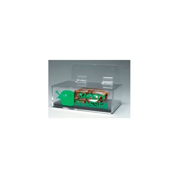 - DESIGNED TO HOLD UP TO 4-6 PAIRS OF GLASSES IT'S SIZE MAKES IT CONVENIENT TO USE NEARBY MACHINERY OR ANYWHERE FAST ACCESS IS PREFERRED HAS A DUST COVER FOR CONSTRUCTION SITES OR OTHER DIRTY, DUSTY LOCATIONS CUSHIONED FOAM BOTTOM WALL OR TABLE MOUNT 6" HIGH BACK PLATE SAFETY GLASSES NOT INCLUDED