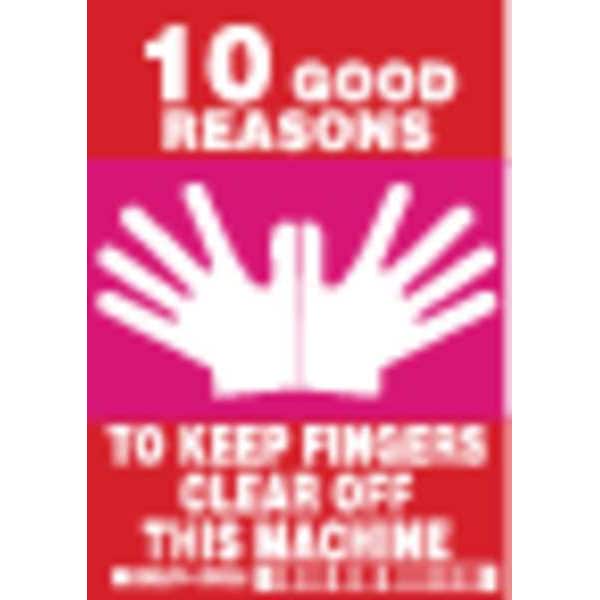 Procedure Sign, Sign Subject Matter Keep Hands Clear, Height 5 in, Width 3 1/2 in, Sign Material Polyester, Sign Mounting Style Adhesive Surface, Header No Header, Legend 10 Good Reasons To Keep Fingers Clear Off This Machine, Printed Language English, Sign Shape Rectangle, Package Quantity 5