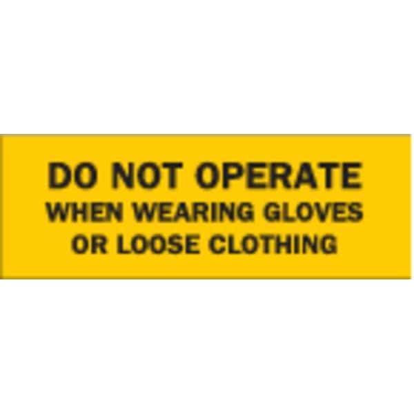 Procedure Sign, Sign Subject Matter Personal Protection, Height 3 1/2 in, Width 10 in, Sign Material Polyester, Sign Mounting Style Adhesive Surface, Header Do Not Operate, Legend Do Not Operate When Wearing Gloves Or Loose Clothing, Printed Language English, Sign Shape Rectangle