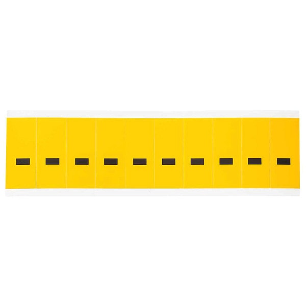 Punctuation Label, Adhesive Type Permanent Adhesive, Application General Identification, Pipe and Valve Marking, APWA Compliant Color No, Background Color Yellow, Character Color Black, Character Color Gradient Solid Color, Character Height 1 15/16 in, Character Outline Color Not Applicable, Character Type Punctuation, Characters Included Dash (-), Die Cut Yes, Embossed No, Font Gothic, Includes (10) Cards, Indoor/Outdoor Usage Indoor/Outdoor, Letter Casing Uppercase, Material Vinyl