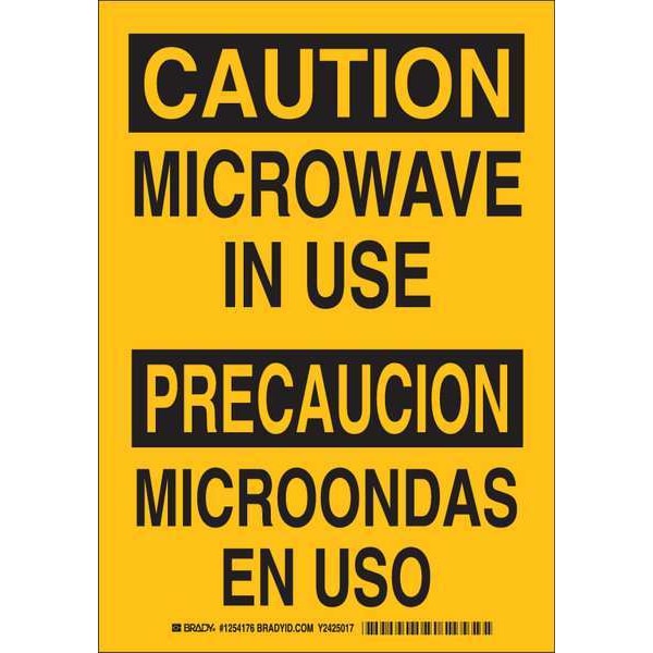Safety Sign, Sign Subject Matter Health Hazard, Height 10 in, Width 7 in, Sign Material Polyester, Header Caution/Precaucion, Legend Microwave In Use/Microondas En Uso, Printed Language English, Spanish, Sign Shape Rectangle